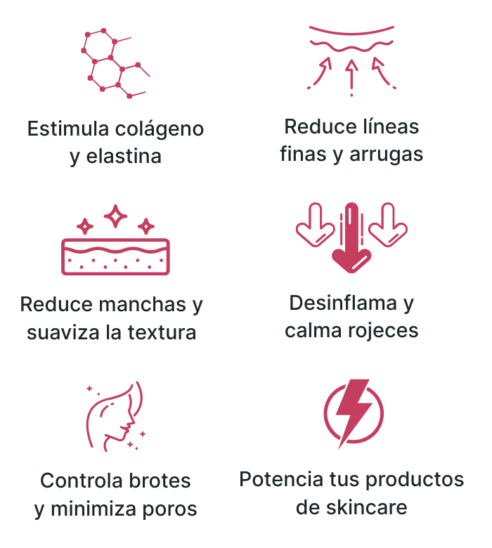Es la forma más efectiva de rellenar líneas de expresión, unificar el tono y recuperar la firmeza de tu rostro en solo 10 minutos al día, sin salir de casa.
